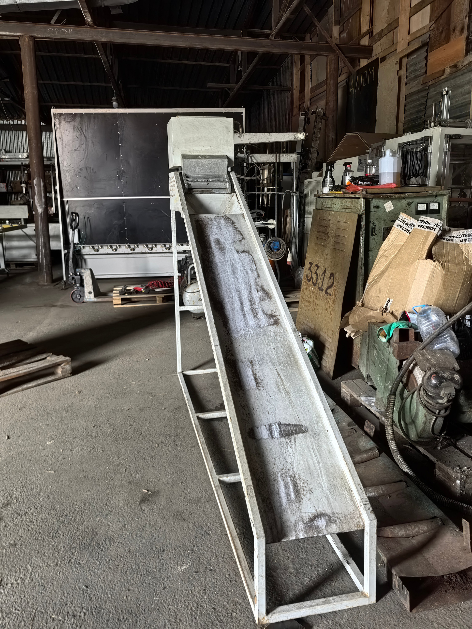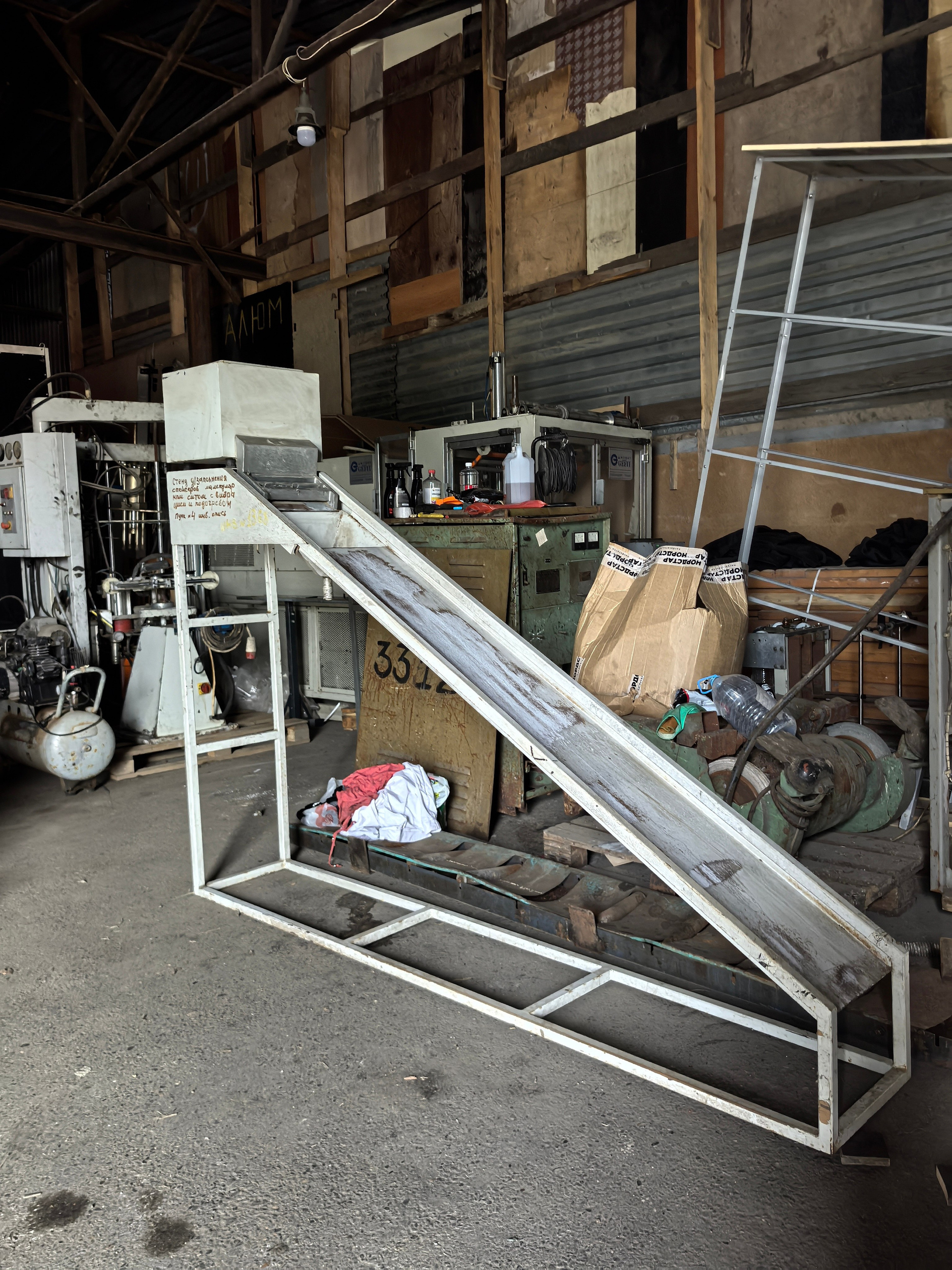 Наклонный стенд предназначен для засыпки молекулярного сита в нарезанные дистанционные рамки. Засыпка снабжена подогревом для снижения влажности молекулярного сита. Засыпать можно сразу в несколько рамок различной ширины одновременно. Стенд снабжён вибрацией для более плотного заполнения дистанционных рамок.